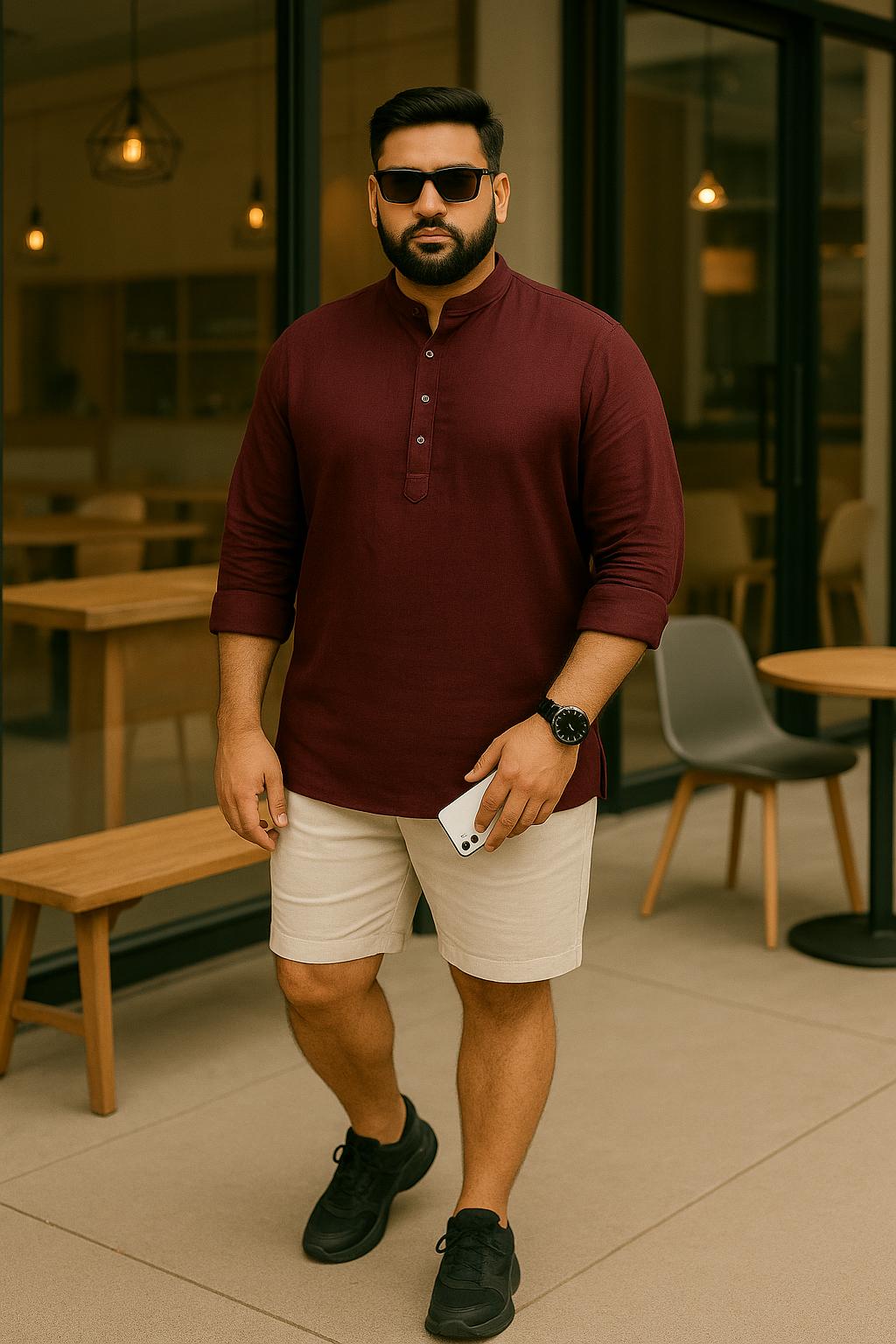 Gulmohar (गुलमोहर) – Dark Maroon - Premium Linen Blend Short Kurta