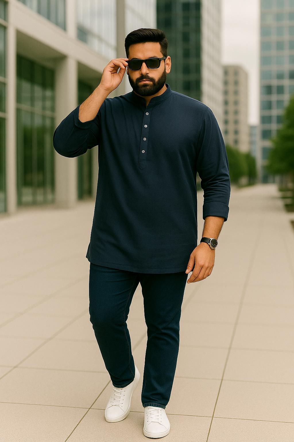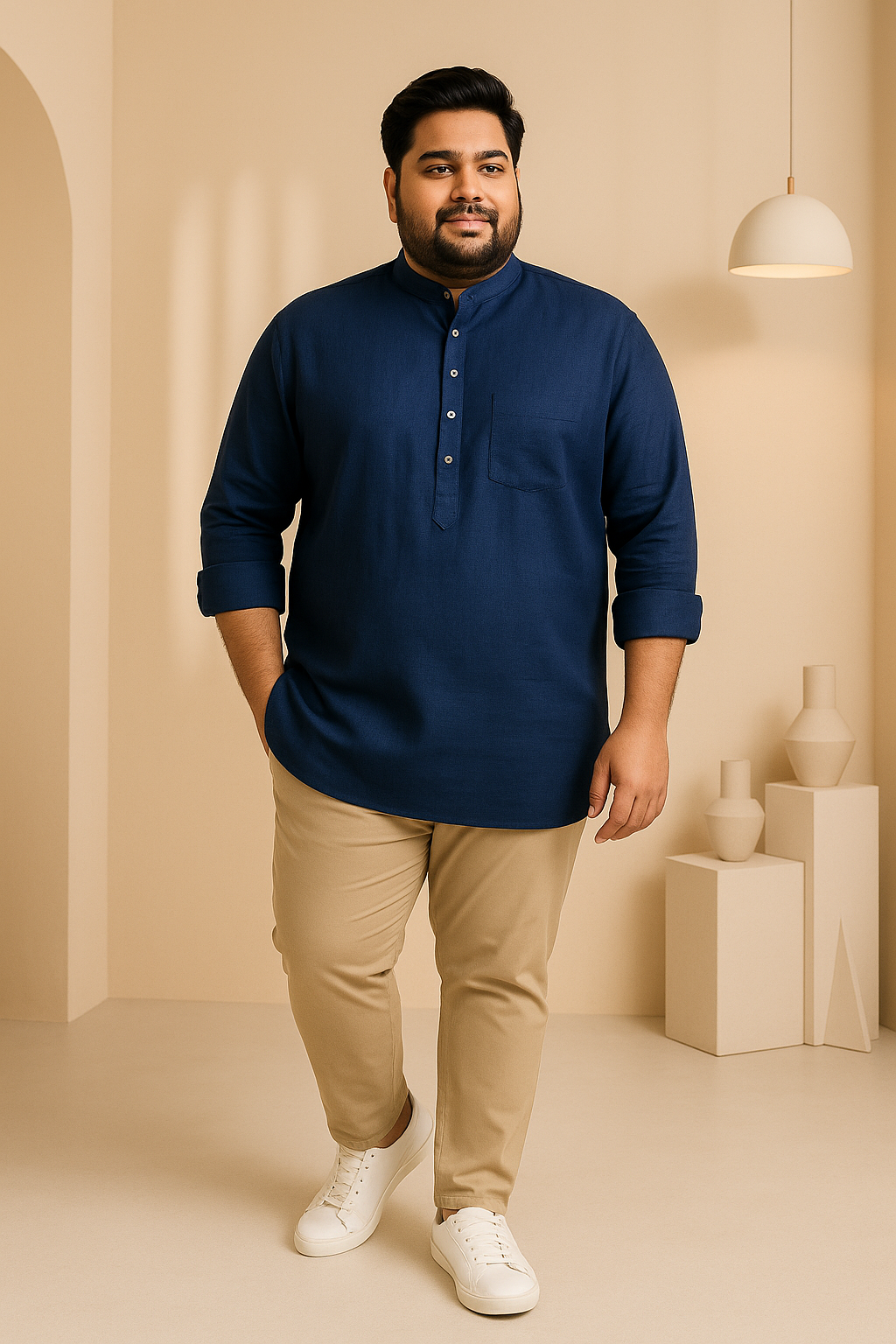 Neelam (नीलम) – Dark Blue - Premium Linen Blend Short Kurta